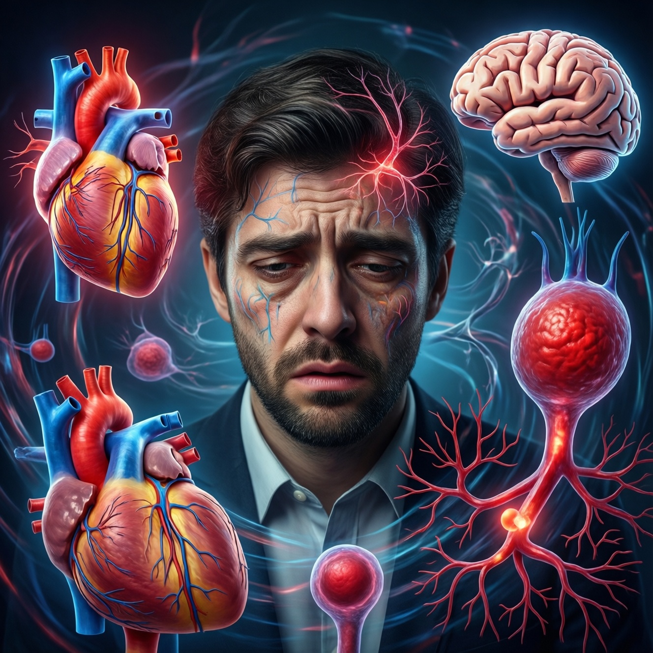 - Если стресс повторяется ежедневно, то повышается сосудистый тонус и реактивность на стимулы (кофеин, недосып, конфликт), что может проявляться скачками давления и ощущением сердцебиения.